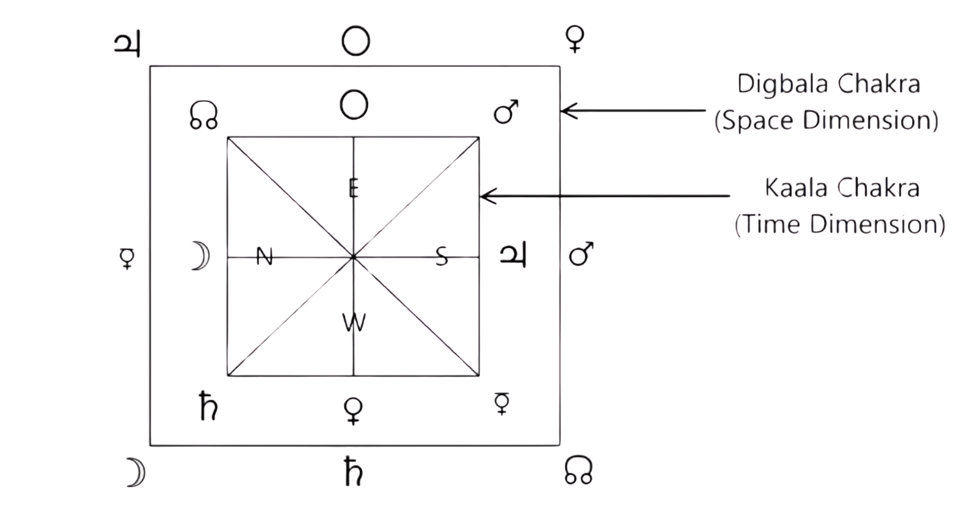 Interestingly, the directional rulers (digpatis) in the Kālachakra differ from those in the standard Digchakra (directional chart). This is because the Kālachakra expresses not the external spatial order of the universe, but the internal, temporal rhythm—the way planetary energies unfold in time and consciousness.